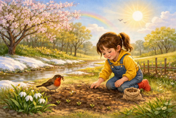 Lily, the little rabbit, stretched her paws and peeked outside her burrow. The snow had melted, and the air smelled fresh and sweet. “Spring is coming!” she squeaked excitedly.